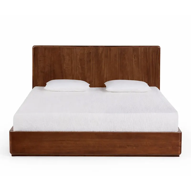 The bed frame features a heavy build that ensures strong support for daily use. Solid wood construction enhances durability while maintaining a refined appearance. As a solid wood bedroom set, it offers lasting strength without unnecessary ornamentation.