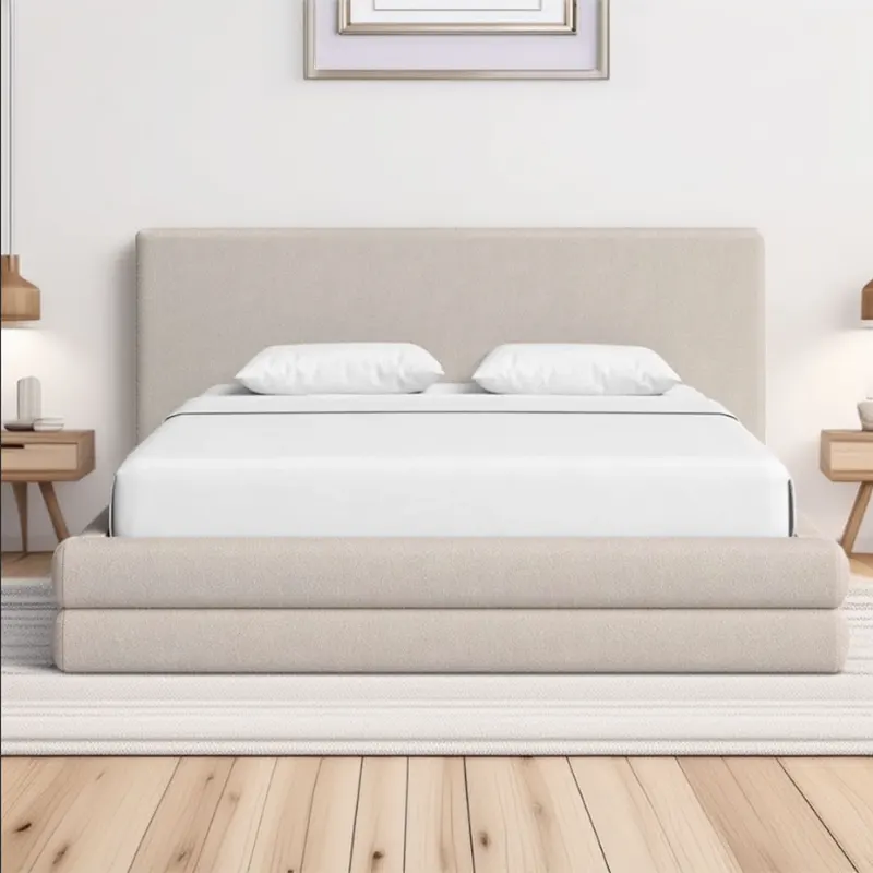 The Angel upholstered Premium bed by HOC Furniture blends modern bed frame design with luxury bed in UAE craftsmanship. With its soft bouclé upholstery, it creates a cozy and elegant atmosphere. Designed as a custom made bed UAE, this model offers comfort, style, and durability together. Whether you are styling a villa or an apartment, this top selling bed Dubai complements every interior while adding a refined, timeless look.