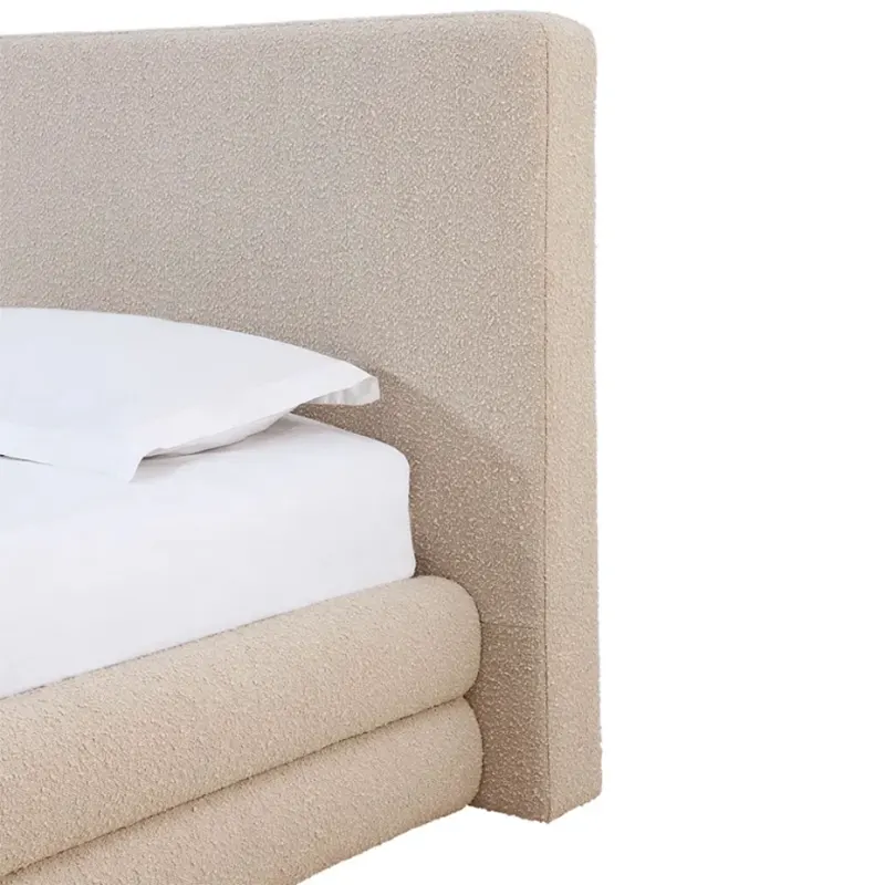 Upholstery – Bouclé Fabric: Soft textured fabric enhances warmth and luxurious feel.