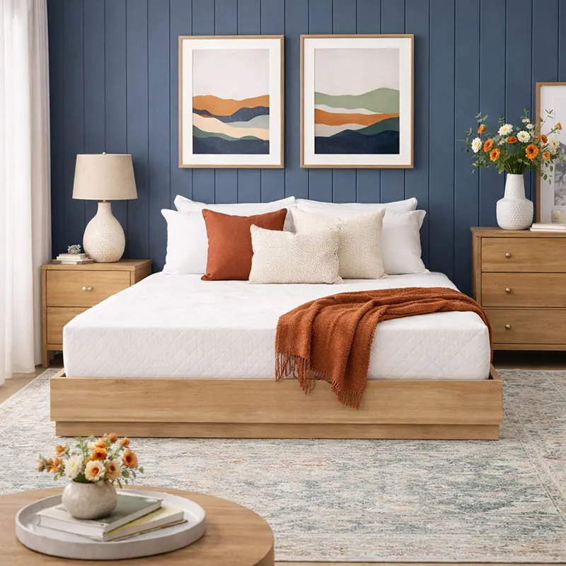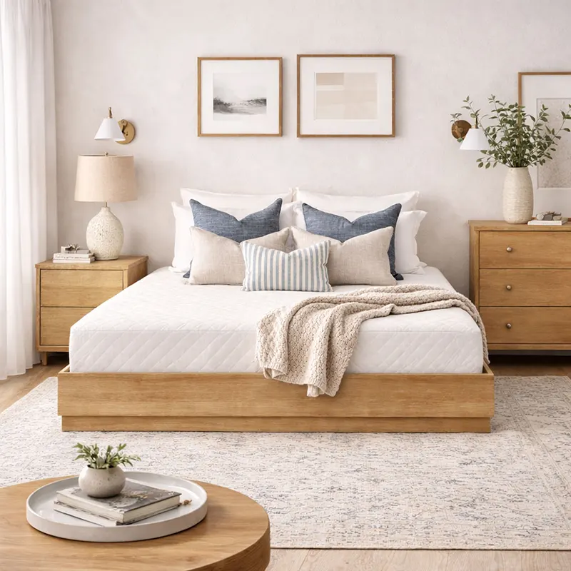 Available in Single, Double, Queen, King, and Super King sizes, this low profile bed frame Dubai option fits apartments and villas alike. Whether for residential or hotel use, this wooden platform base UAE design represents minimalist bed base Dubai standards with reliable performance.