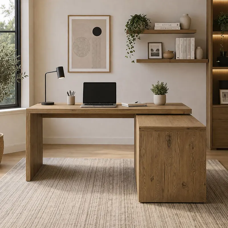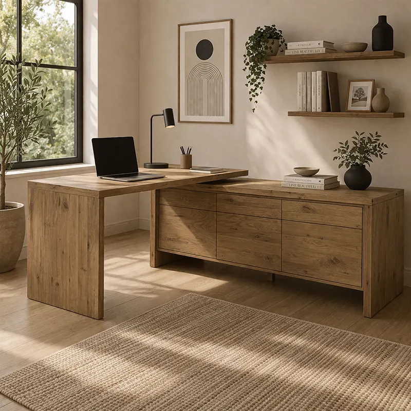 The Arden L-Shape Storage Desk is a refined l shape desk Dubai design made for stylish home offices, manager rooms, and professional workspaces. This modern office desk UAE option combines a bold solid block build with a warm oak texture finish. It also works as an executive desk Dubai piece for users who need comfort, storage, and a strong visual presence.