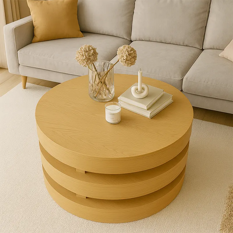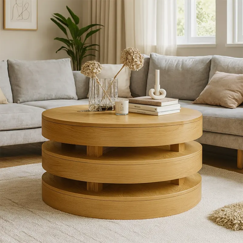 The Aurora Stacked Table from HOC Furniture blends modern coffee table elegance with everyday practicality. While its layered form adds dimension, its solid wood coffee table structure ensures lasting strength. With an oak veneer finish and a round coffee table silhouette, it suits both modern and classic interiors. Whether in a bright apartment or a spacious villa, this designer coffee table becomes a focal point for your living room table setting.