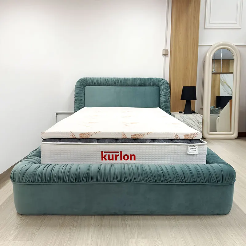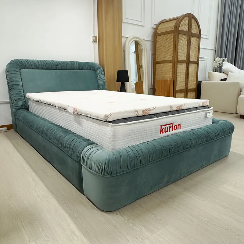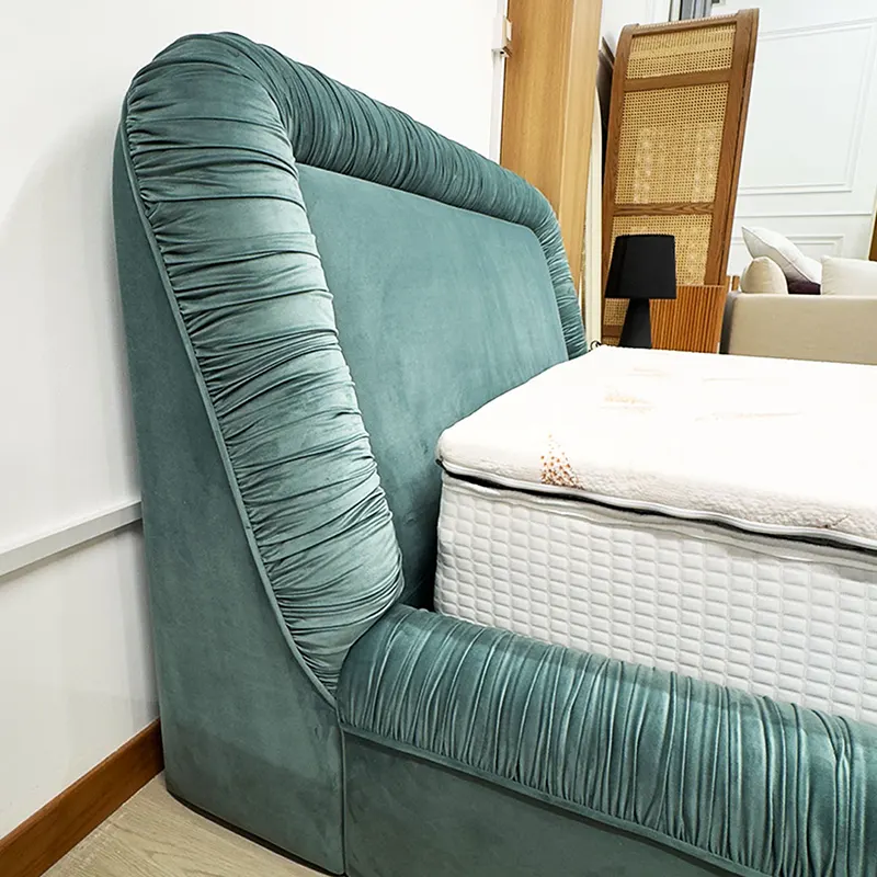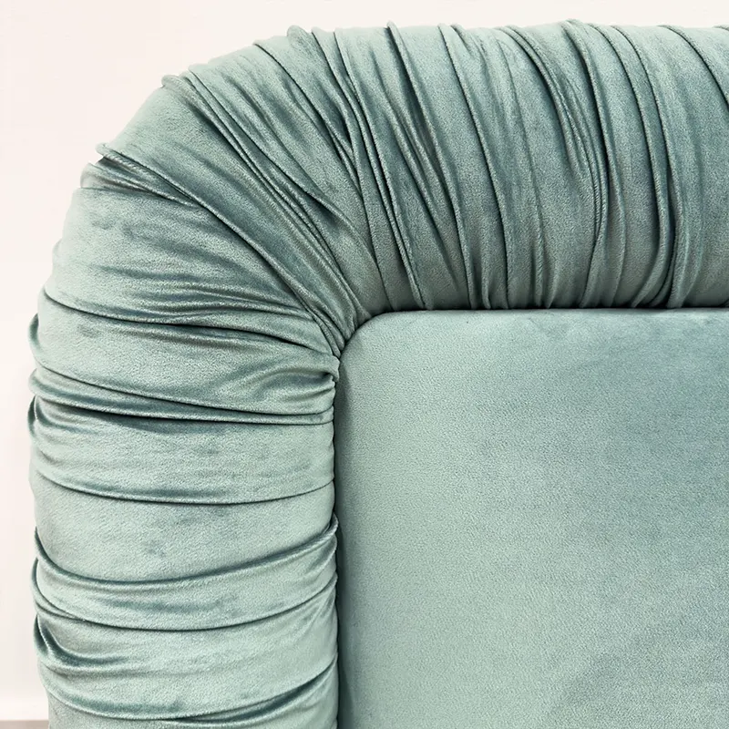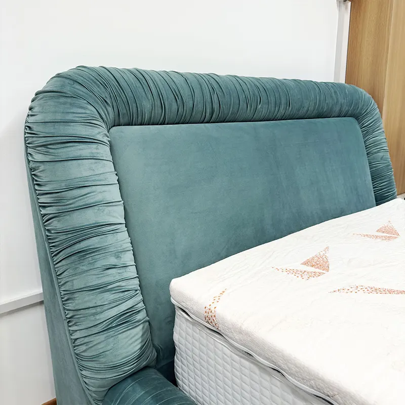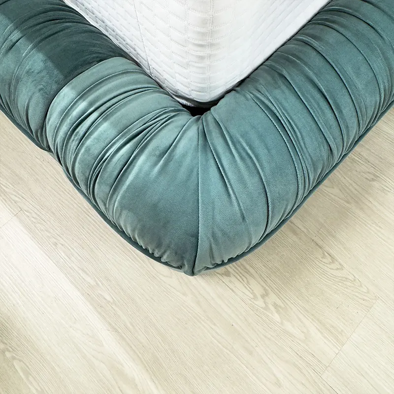 Because of its ruched upholstery and smooth curves, the bed also performs beautifully as a Velvet Upholstered Bed. Although the form feels plush, the silhouette remains clean and well-proportioned, making it suitable for contemporary interiors.