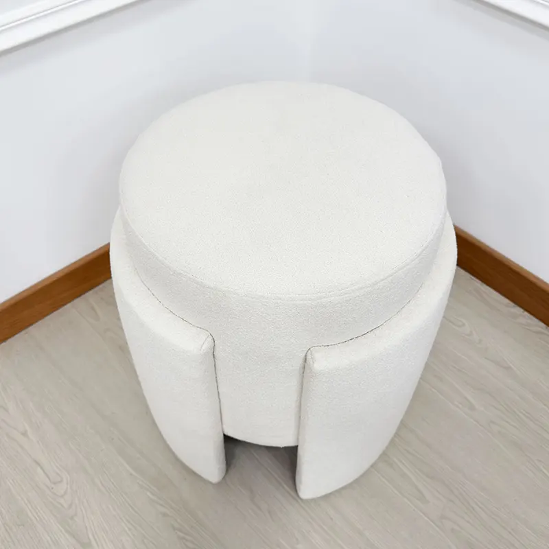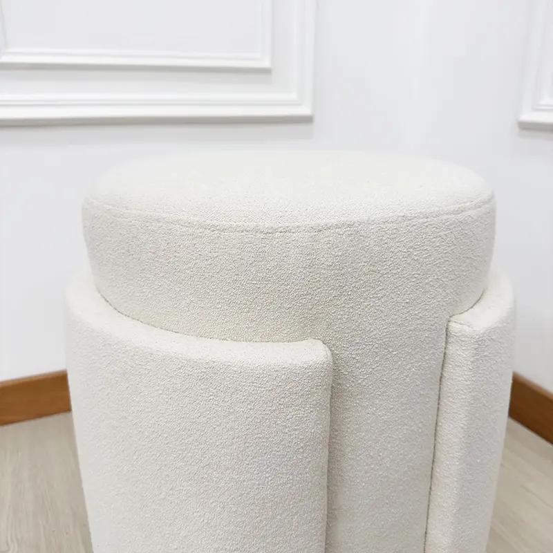 The boucle upholstery introduces texture and warmth, while the padded seat ensures everyday comfort. Whether used beside a sofa, at the foot of a bed, or near a vanity, it adapts smoothly. Because of its thoughtful height and diameter, this Modern Ottoman UAE functions comfortably as a Round Ottoman or as a flexible Pouf Seat Dubai for extra seating.