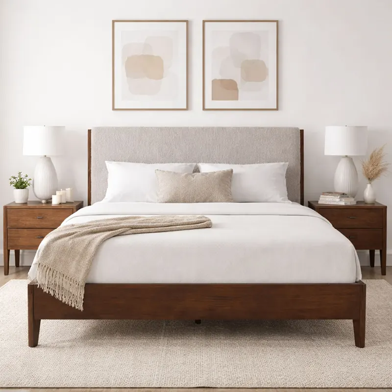Modern Platform Bed in Solid Wood with Upholstered Elegance