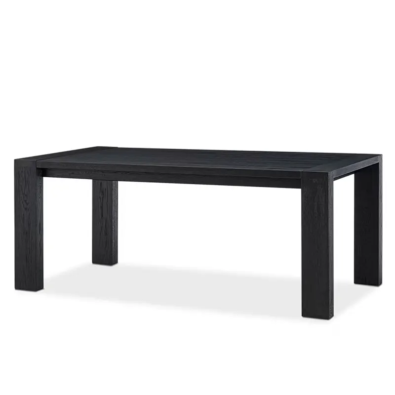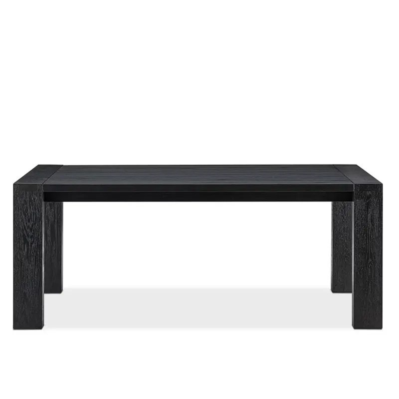Rich black wood finish adds depth and a bold modern character to dining spaces. -