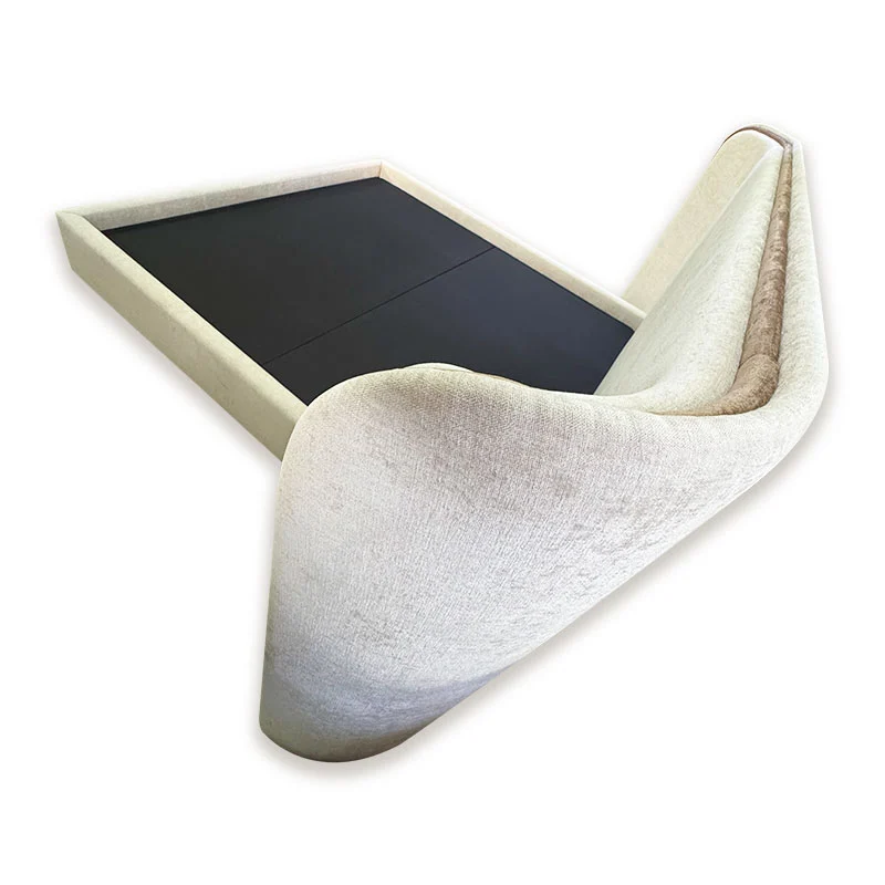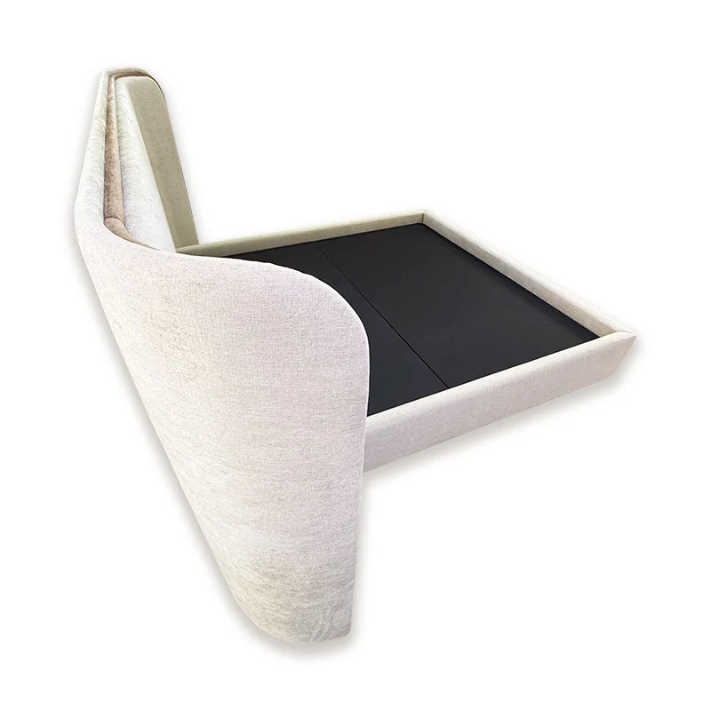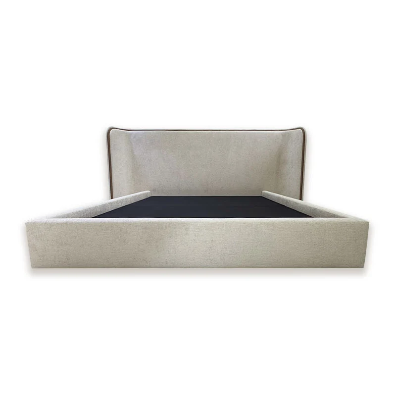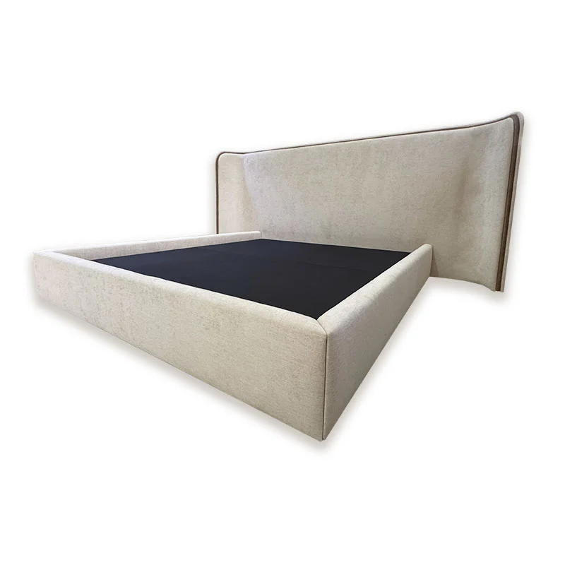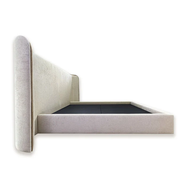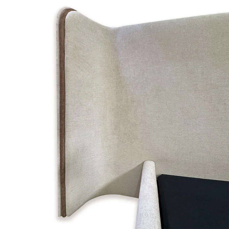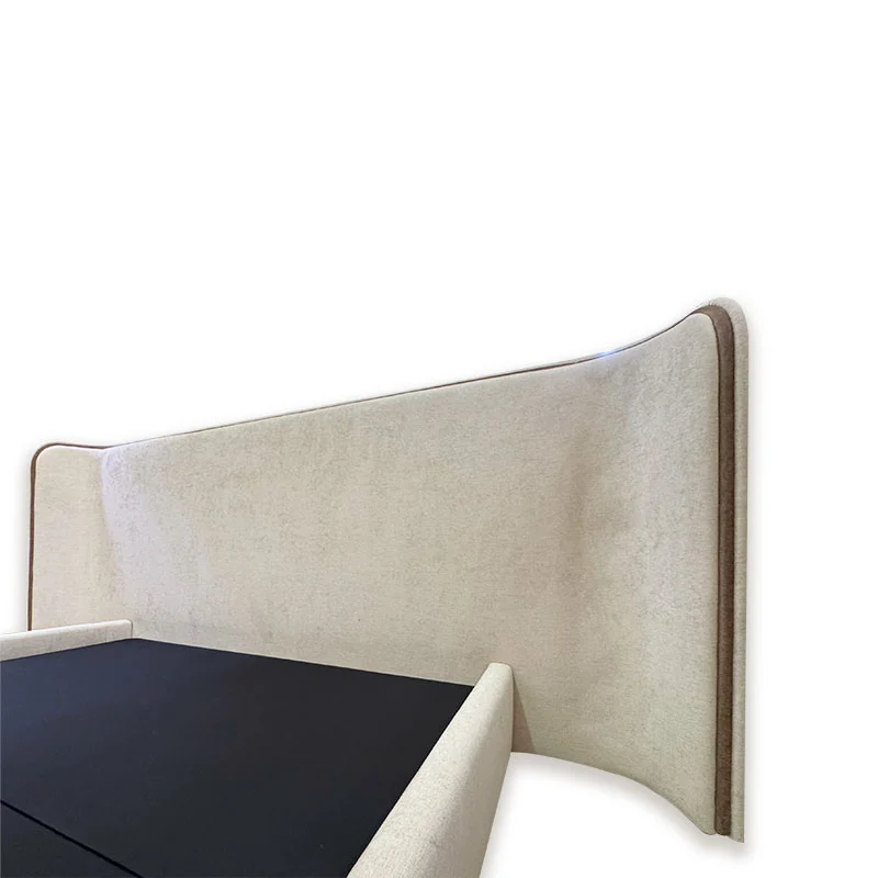 Features a wide curved headboard with a sleek piping finish, offering a bold yet elegant visual presence.