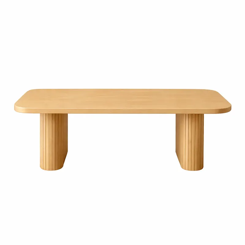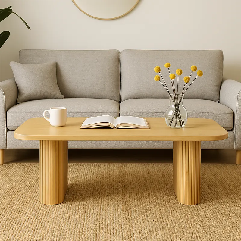 The Ribera Coffee Table is a modern fluted coffee table crafted from solid wood with a natural oak finish, designed for balanced, elegant living rooms in Dubai villas and apartments.
