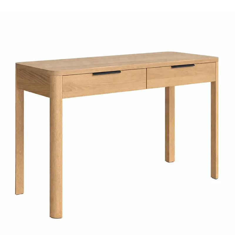This piece is a stylish oak finish desk with a natural look that fits many room styles. The oak finish desk surface adds warmth to the space. The 2 drawer desk layout adds storage without making the design look heavy. For anyone searching for a 2 drawer desk that is compact, useful, and modern, Tavon is a strong option.