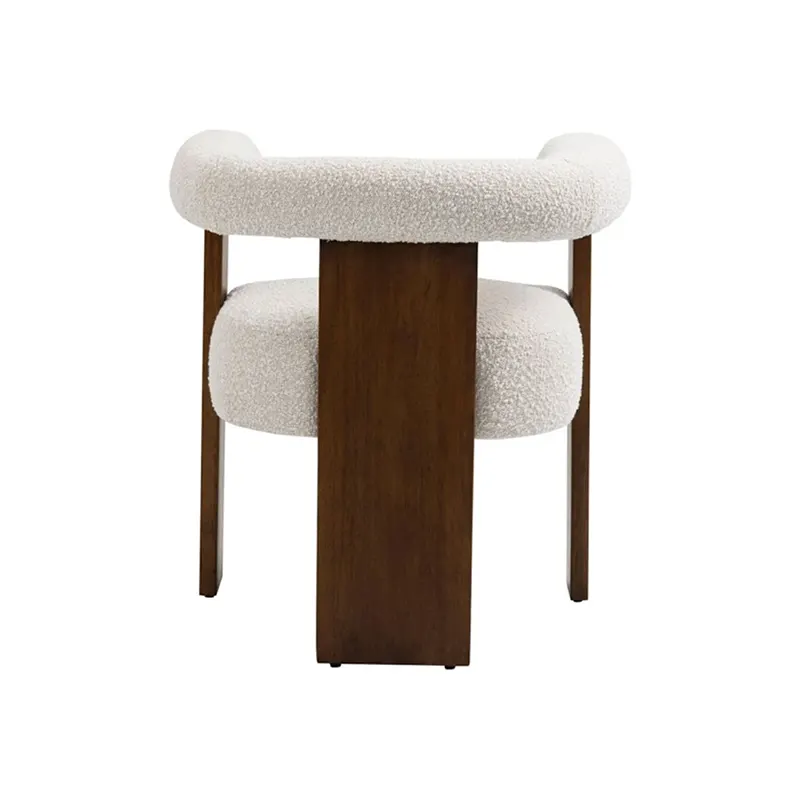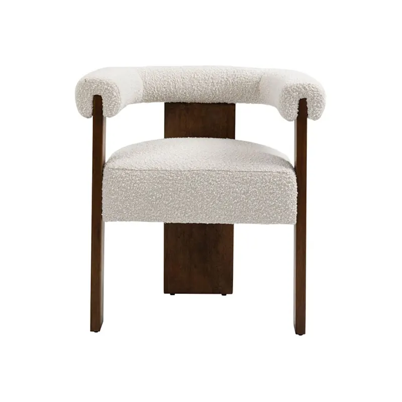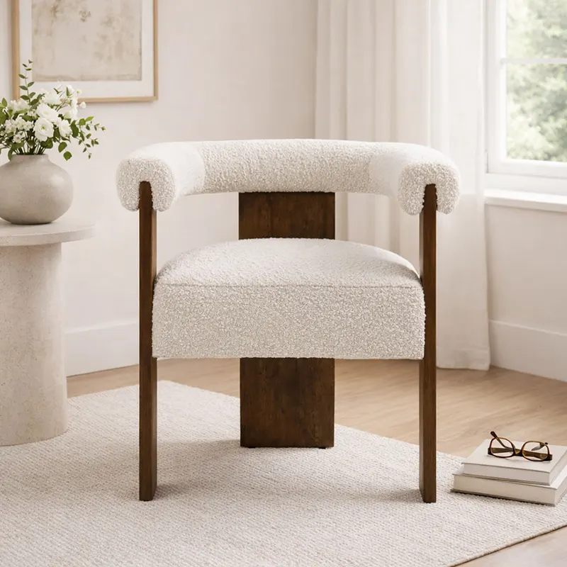 Soft textured bouclé enhances depth while giving this luxury lounge chair UAE its premium character.