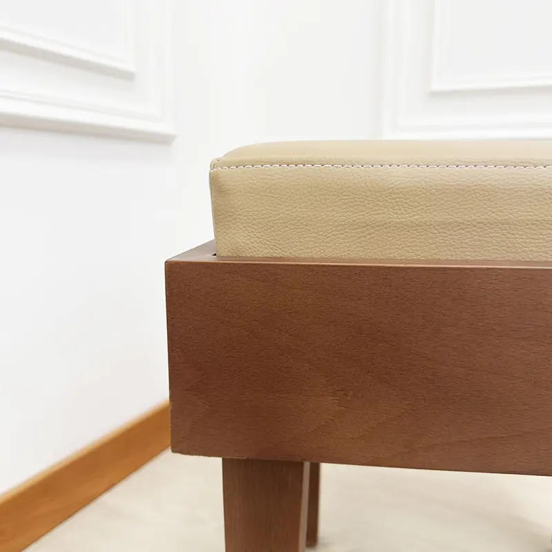 Crafted with a solid wood frame, the stool offers strength and long-term durability. The cushioned top is filled with comfort foam, providing a soft yet supportive seating experience. Finished in smooth leatherette, this Modern Wooden Stool brings a refined touch while remaining easy to maintain for daily use.