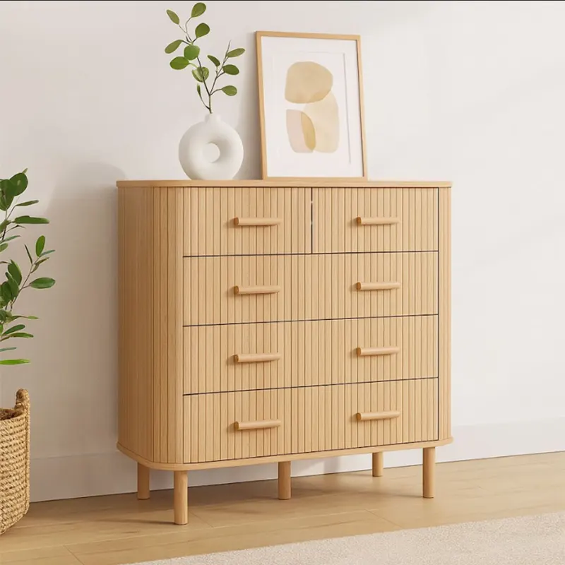 Legs – Raised Stand: Elevated base gives the wooden dresser with fluted panels a light, airy feel.