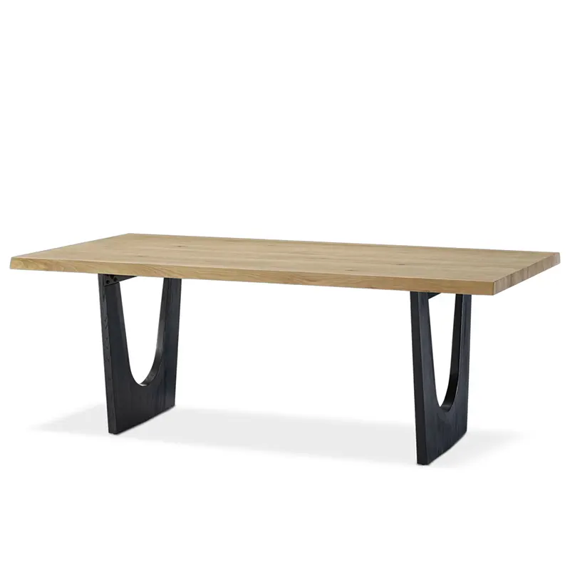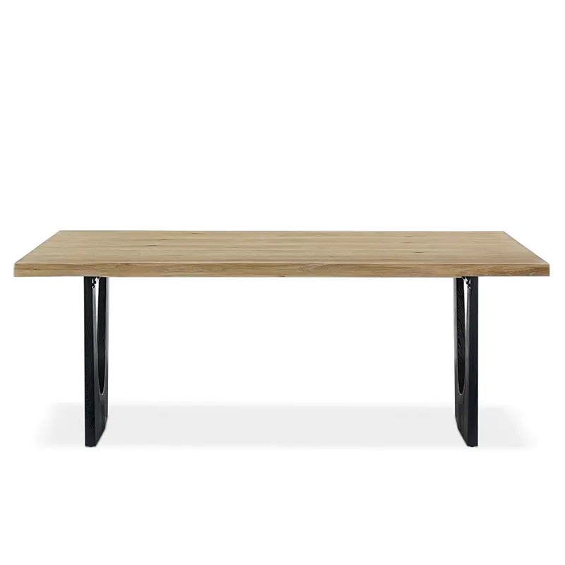 The Yuri Dining Table by HOC Furniture is a modern dining table crafted from natural wood with a solid build, thick slab top, and stable U-frame legs for daily dining.
