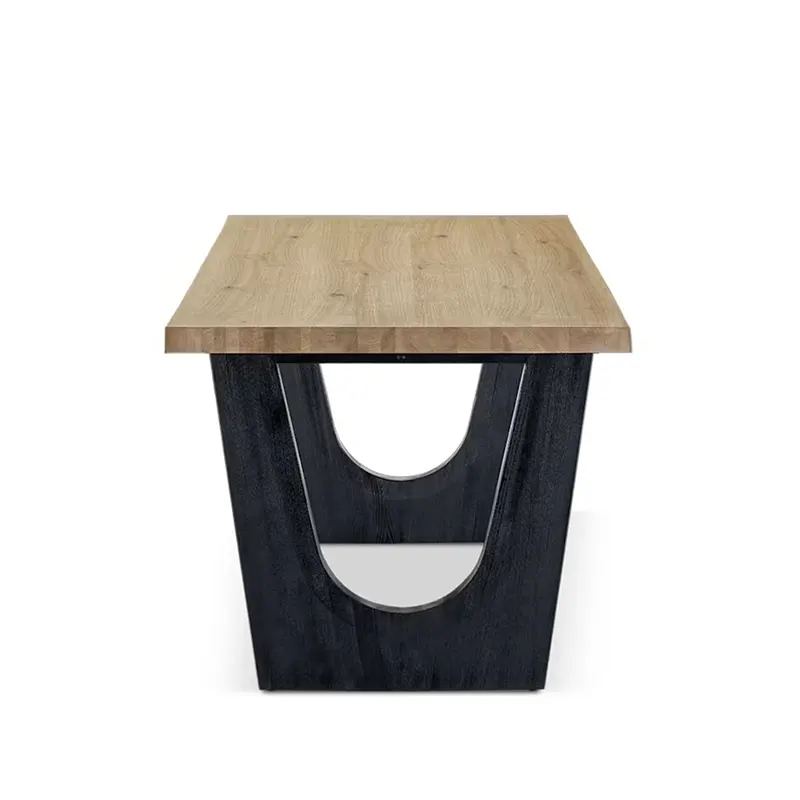 The Yuri Dining Table features a solid build, so it supports daily use with confidence. In addition, natural wood construction adds warmth and authenticity to the space. The thick slab top enhances visual strength, while the smooth grain finish highlights material quality. Furthermore, the U-frame legs improve balance and legroom, ensuring comfort during long meals.